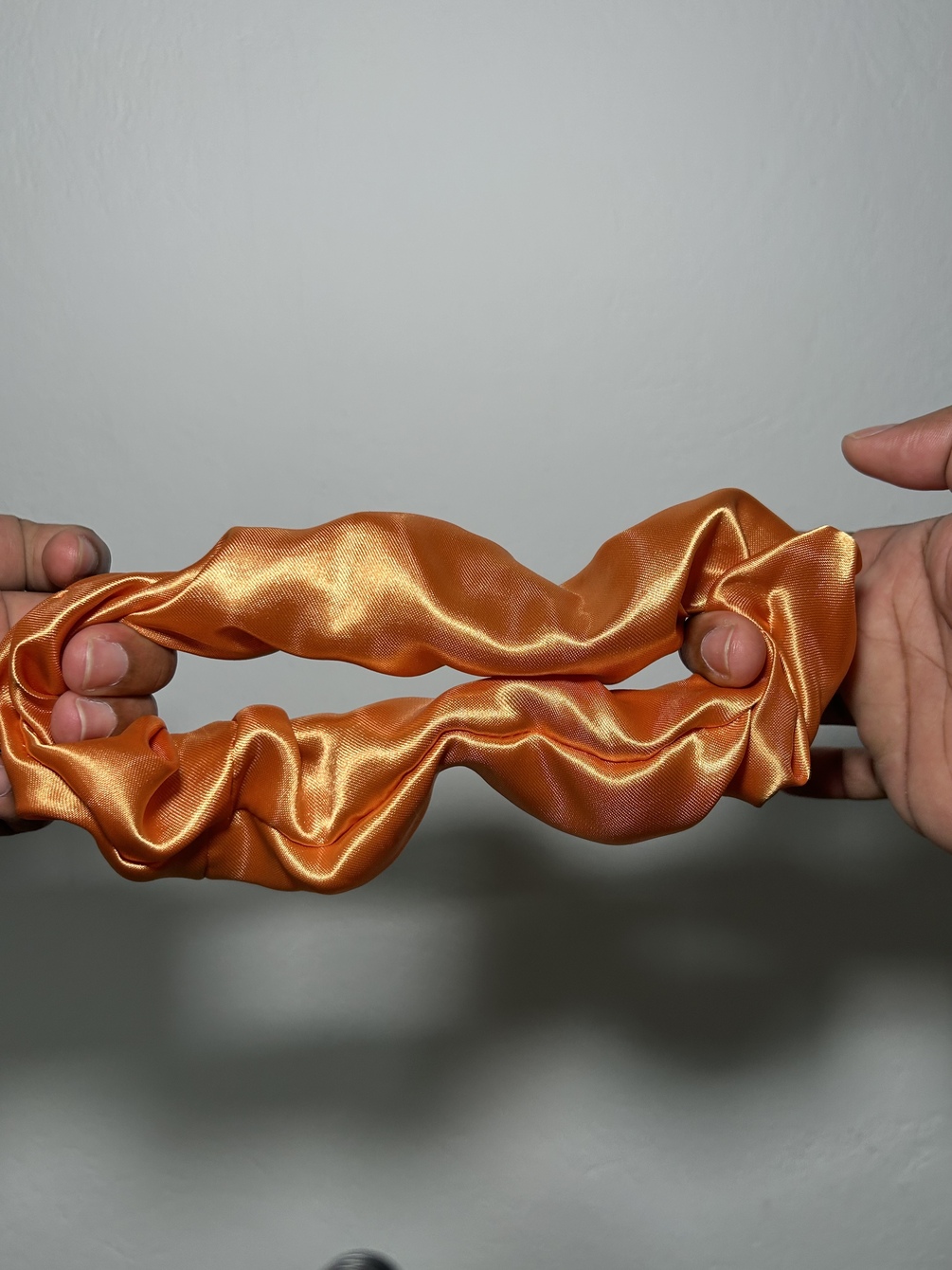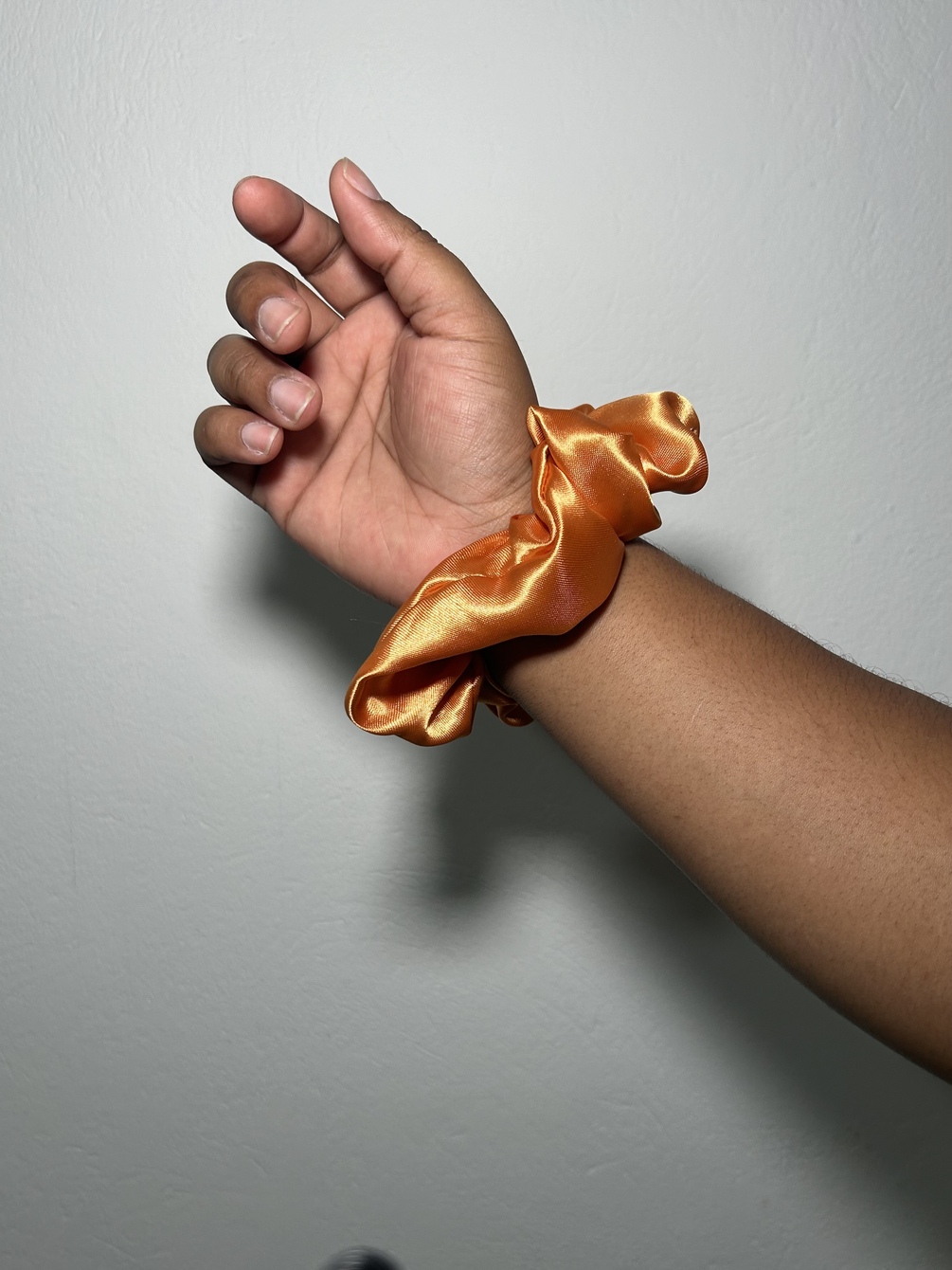 Introducing our Rustic Sunset Scrunchie - a cozy addition to our Spring 2024 collection . This scrunchie , with its deep orange hue reminiscent of a warm sunset , is crafted for comfort in soft satin.